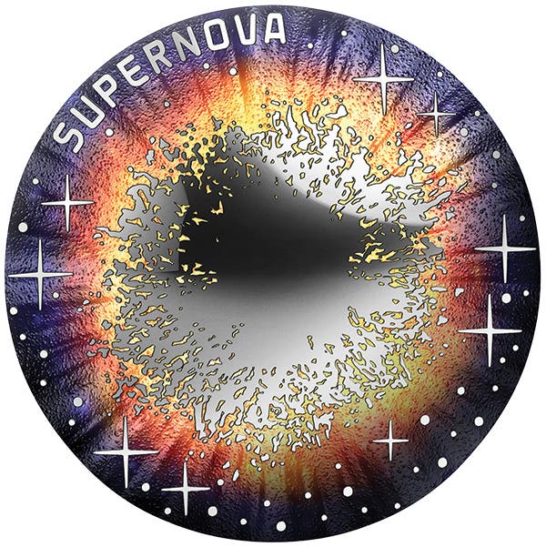 Despite a tight margin, the final ballot count for the Coin of the Year went to Austria’s silver 20 euro “Supernova” coin, which also won the Most Artistic Coin category. This is Austria’s sixth Coin of the Year award (winning in 2000, 2004, 2015, 2022, and 2023 for 2022-dated coins) and has been the recipient of numerous Coin of the Year category nominations and wins.