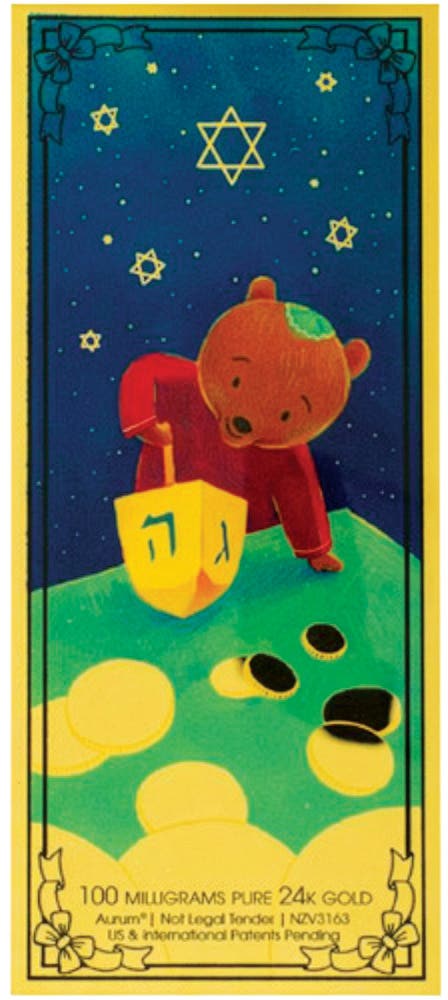These festive gold bank notes add shimmer to a numis gift. They celebrate the festival of Hanukkah and Christmas with adorable bears dressed in holiday attire.