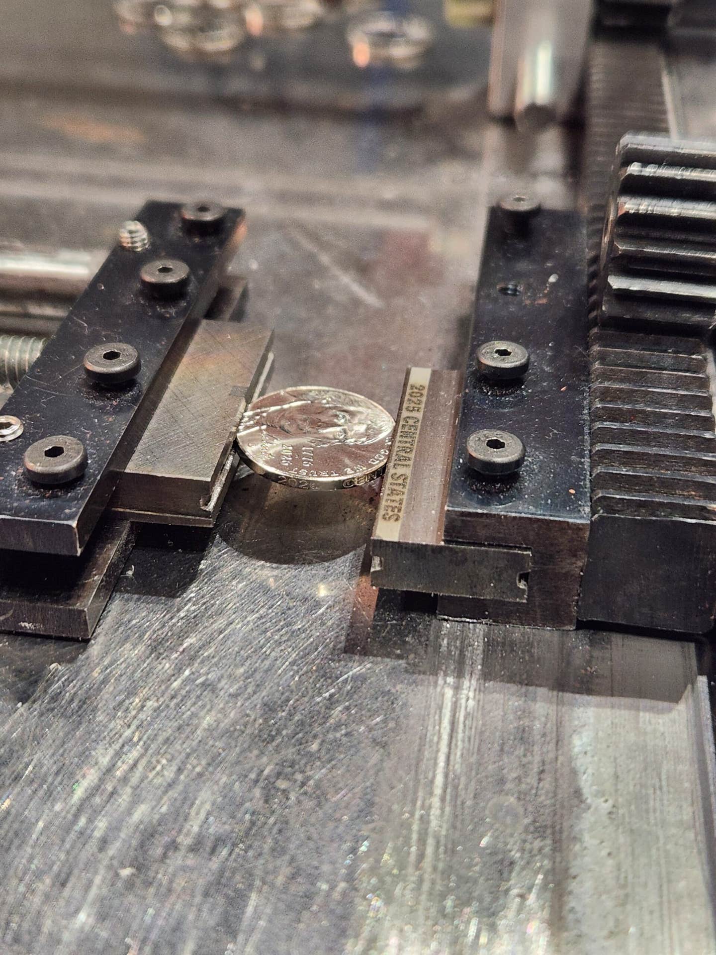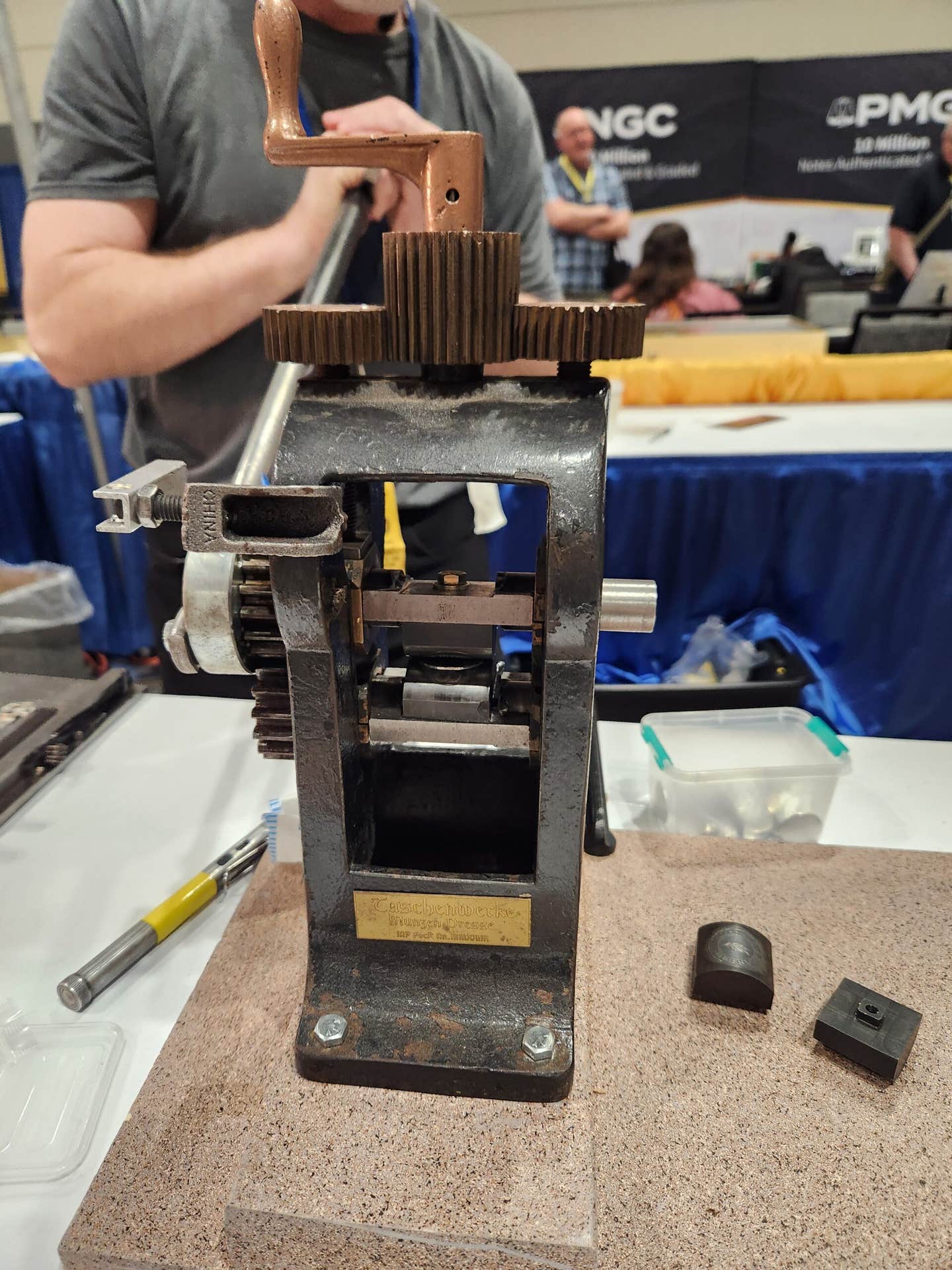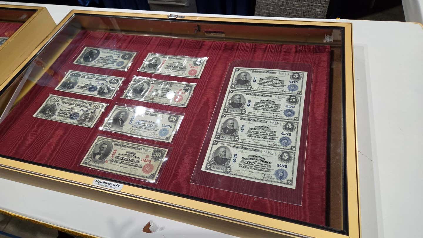 Mixed in with the bustling dealer tables were booths for the Higgins Museum, which displayed some of their Missouri notes in honor of this year’s convention showcase, as well as a booth for the Root River Mint, where medals engraver Joe Paonessa was creating Missouri commemorative medals onsite.