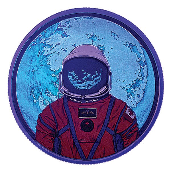Canada has become the second country to have an astronaut fly by the Moon upon the recent launch of Artemis II. To honor this momentous occasion, the Royal Canadian Mint is celebrating with a 1 oz. 99.99% pure silver coin featuring an astronaut in space against the background of the Moon. This issue even takes collectors to space with a special, selective color feature that is revealed under a black light.