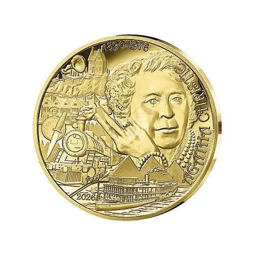 There is a body in the library! One of the latest coin releases from Monnaie de Paris is from its “L’Art de la Plume” series, which honors literary icons in gold and silver. Depicted are some of Christie’s greatest hits, including Death on the Nile and The Body in the Library, as well as an issue focused solely on the iconic author. Courtesy of the Monnaie de Paris.