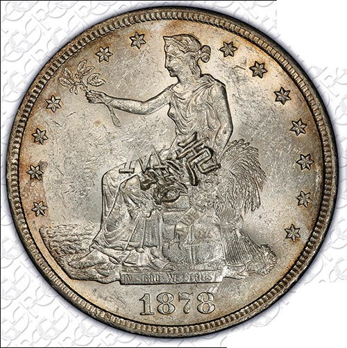 “By all accounts the 1878-CC is the most popular rarity among circulation strike trade dollars,” reports David Bowers.