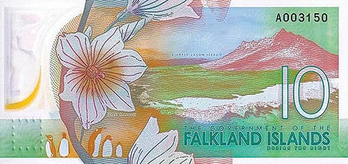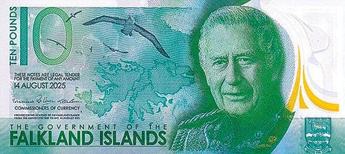 2025 10 pounds issued by the Falkland Islands Government. P#21. Photograph courtesy of PMG.