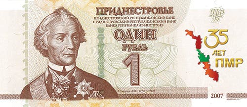 2025 1-ruble commemorative issued by the Bank of Pridnestrovie. P#75. Photograph courtesy of Transnistrian Republican Bank.